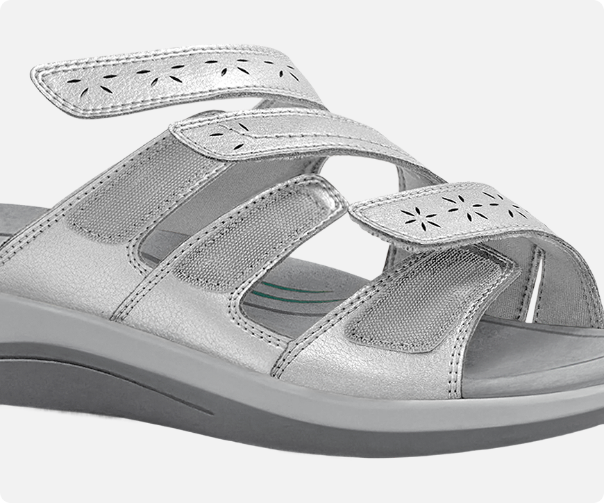 Soft flexible materials contour to the foot shape and provide a pressure free fit. Ideal for bunions, hammertoes, swollen feet, and sensitive feet such as neuropathy, diabetes and arthritis.